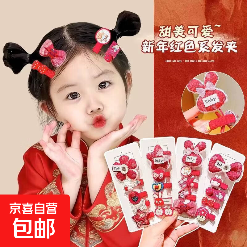 新年儿童发夹头饰红色喜庆蝴蝶结发卡2025年新款女童过年拜年发饰 02#兔子