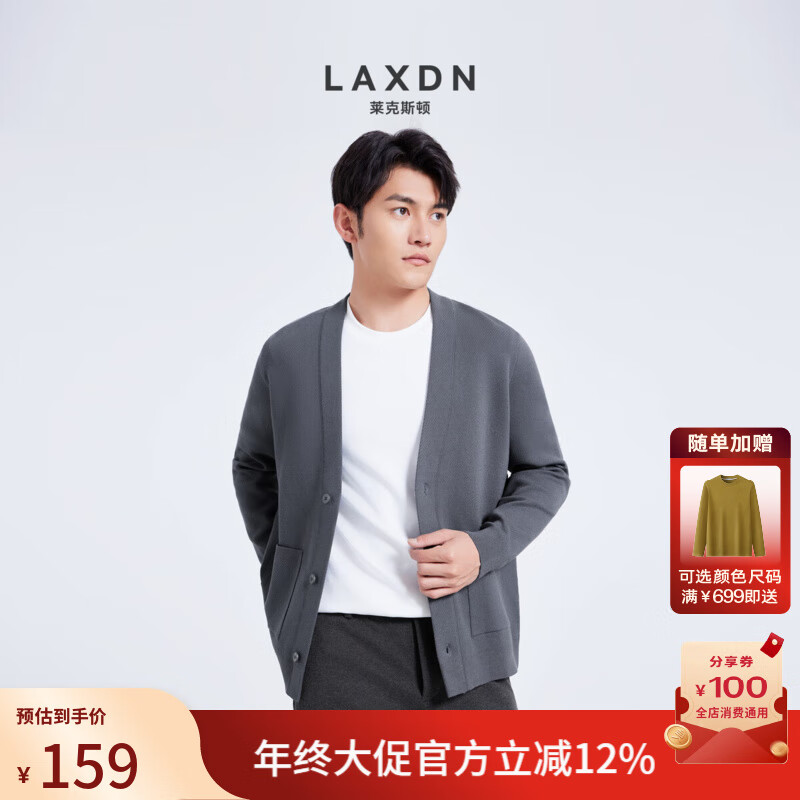 莱克斯顿【商场同款】男装春季新款休闲通勤针织衫外套男毛衣衫男 灰蓝 S