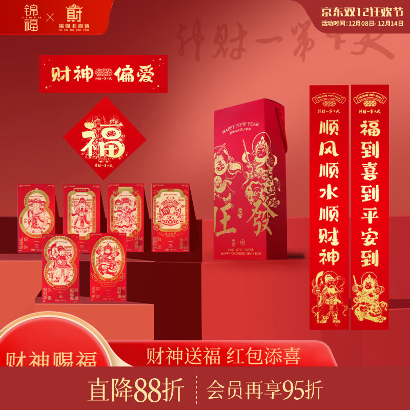 锦福北高峰联名春节贺岁套装 文创礼品2026年对联新春红包窗花礼盒马年春联 天下第一财神-迎春接福