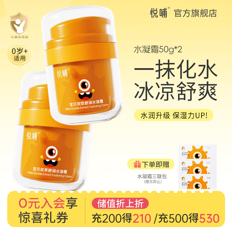 悦哺婴儿面霜 宝宝夏季滋润水凝霜 儿童干燥肌保湿舒缓水润清爽补水霜 【囤货】水凝面霜 50g*2瓶