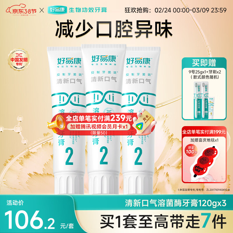 好易康溶菌酶牙膏 清新口气减轻口腔异味 清新护齿套装【120g*3】