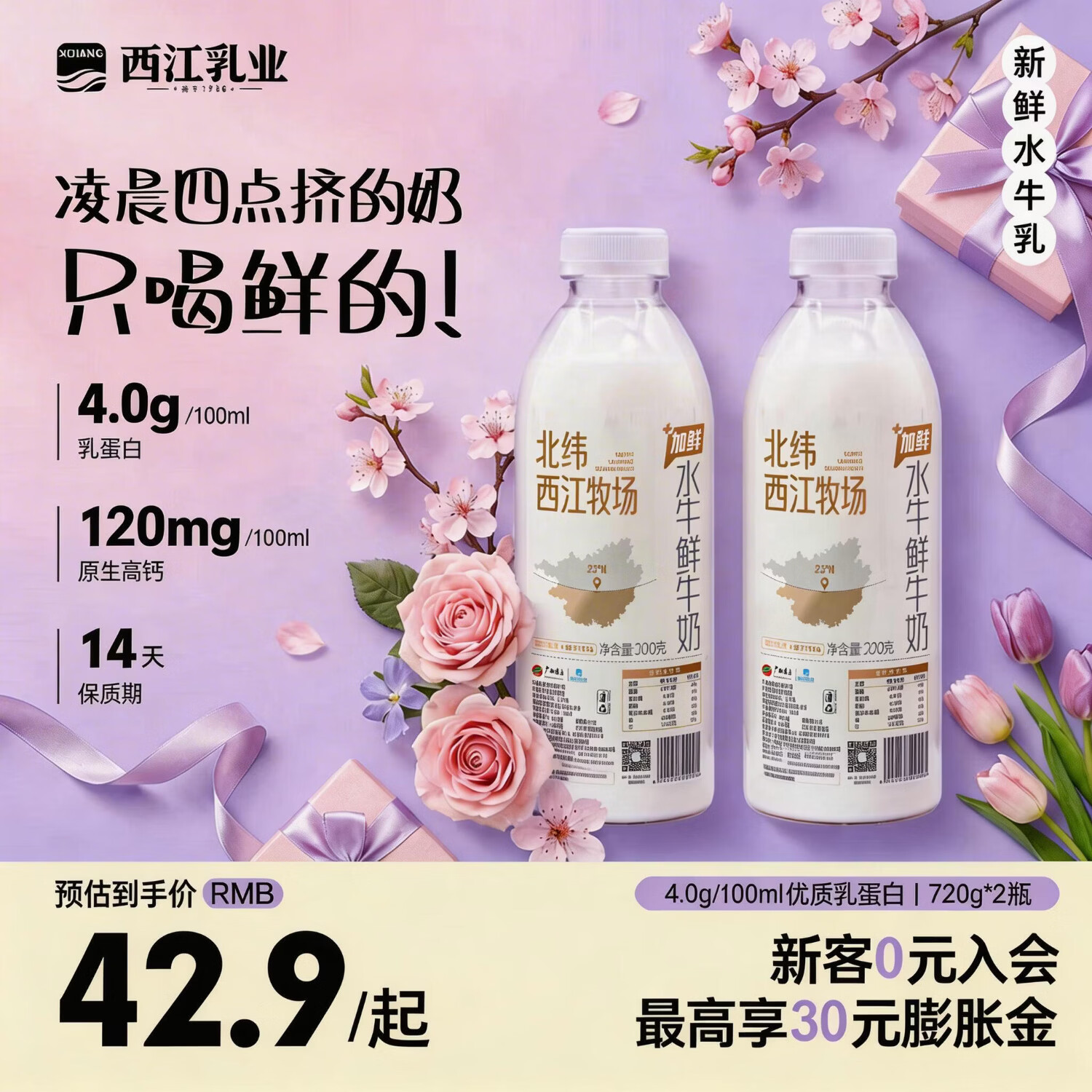 西江乳业水牛鲜牛奶720g/瓶【顺丰发货】低温广西水牛奶巴氏杀菌乳早餐奶 水牛鲜牛奶720g*2瓶
