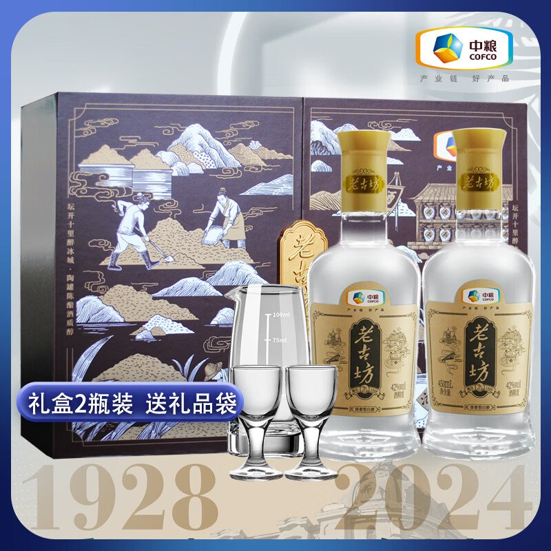 老古白酒礼盒 中粮老古坊白酒礼盒2瓶装纯粮优级浓香型高端礼品 42%vol 450mL 2瓶 【礼盒装】