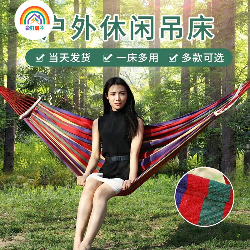 彩虹房子 国潮营天幕帐篷野营野餐超轻防雨防晒沙滩加厚遮阳防潮垫 单人吊床280*80cm(不带木棒)