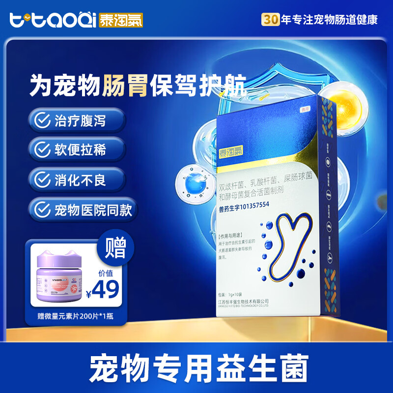 泰淘气狗狗宠物益生菌调理肠胃呕吐软便拉稀腹泻拉肚子专用10袋/盒