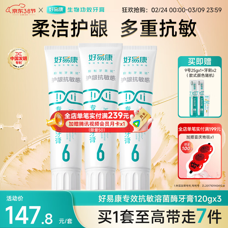 好易康溶菌酶牙膏 减轻牙齿敏感多重护敏 6号3支装【120g*3】