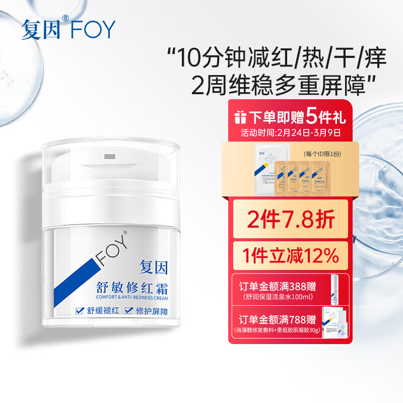 复因舒敏修红霜敏感肌面霜舒缓褪红保湿修护屏障 舒敏修红霜50g*1瓶
