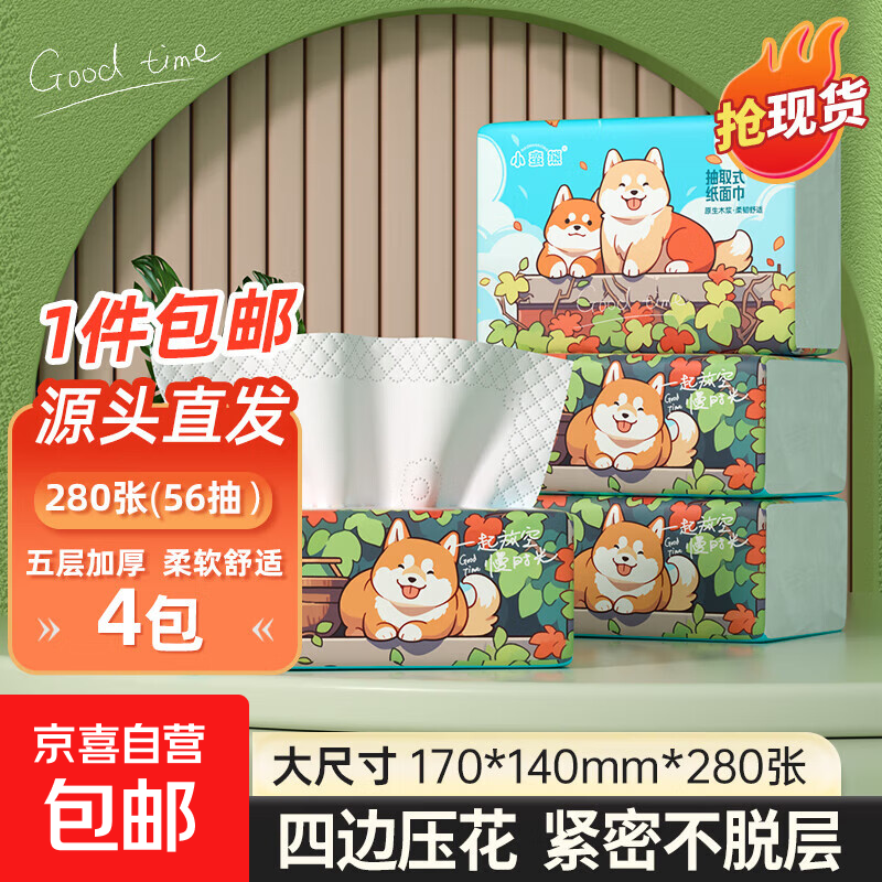 【天降神券】漫花抽纸大包纸巾大尺寸餐巾纸面巾纸擦手家用卫生纸 5层 280张*4包
