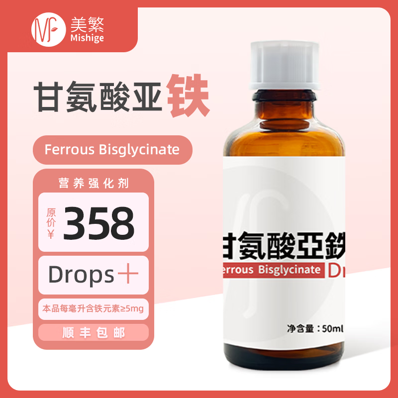 美繁Mishige甘氨酸亚铁液体滴剂50ml螯合铁儿童菁华瓶原装进口 50ml/瓶*1瓶