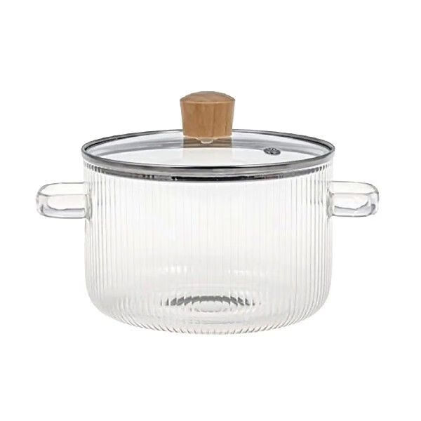 【精选】奶锅家用双耳高硼硅玻璃汤锅透明可明火电陶炉加热耐高温 木纹顶盖小汤锅(1个装) 14cm