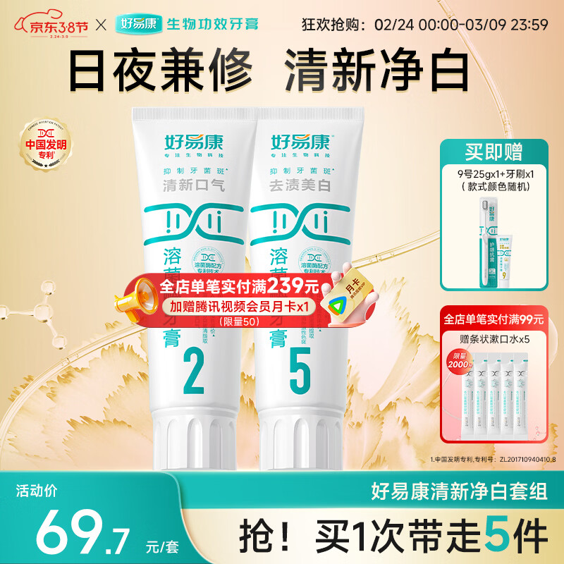 好易康溶菌酶牙膏 去渍净白深洁牙垢改善烟渍茶渍清新口气 清新净白套装200g
