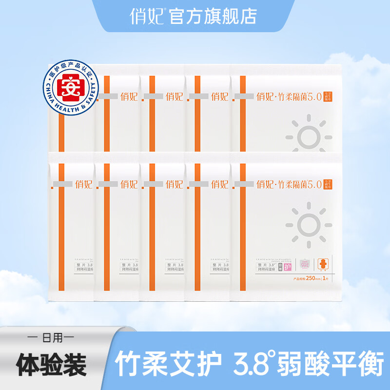 俏妃医护级竹纤维抑菌净味超薄竹纤维日夜组合竹柔卫生巾礼盒 体验装10片