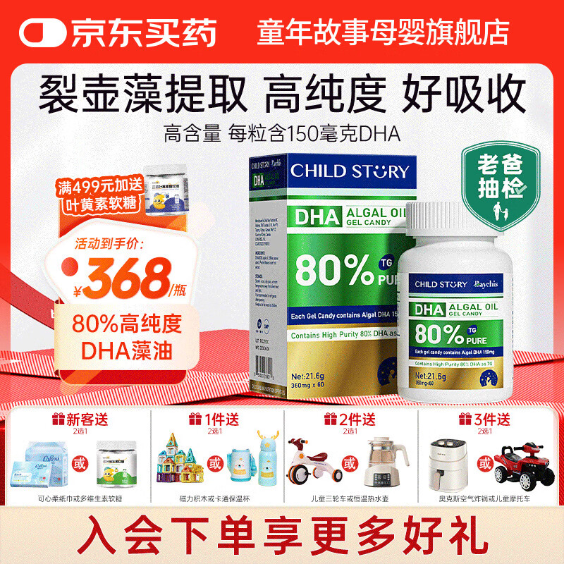 童年故事【老爸抽检】DHA藻油80%高纯度dha 婴幼儿童宝宝孕妇dha植物胶囊 (加拿大原装进口) 60粒*1瓶