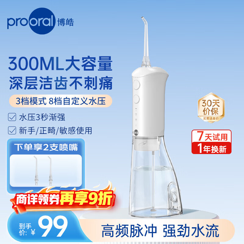 博皓(prooral)电动冲牙器牙齿洗牙器冲洗器水牙线正畸专用洁牙器清洁器牙结石牙垢去除工具 情人节礼物 F38 象牙白-标配2支喷嘴