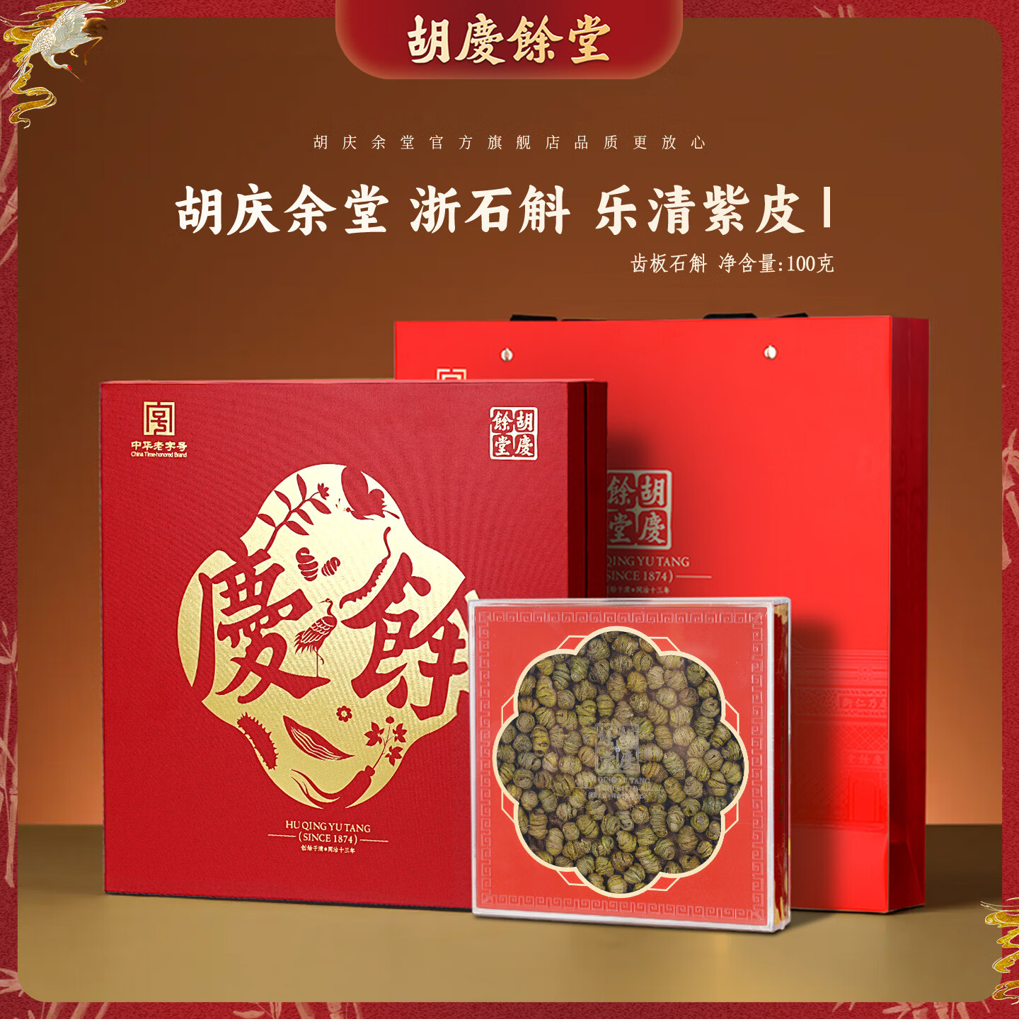 胡庆余堂紫皮石斛100g礼盒石斛枫斗年货礼盒年货补品营养品送礼送长辈 I级(线下门店同款)
