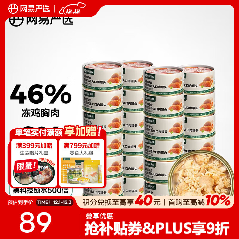 网易严选 浓汤大口肉罐 宠物猫罐头猫粮猫湿粮宠物零食湿粮猫用 鸡肉+三文鱼 85g*24罐