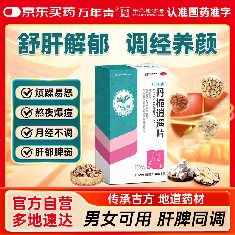 万年青 丹栀逍遥片100片疏肝健脾 解郁清热 养血调经用于肝郁脾弱 血虚发热 两胁作痛 头晕目眩 月经不调