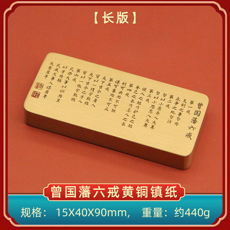 维班曾国藩六戒黄铜镇纸文房文化创意把件礼品刻字定制书法镇尺 曾国藩六戒黄铜镇纸15X40X90mm