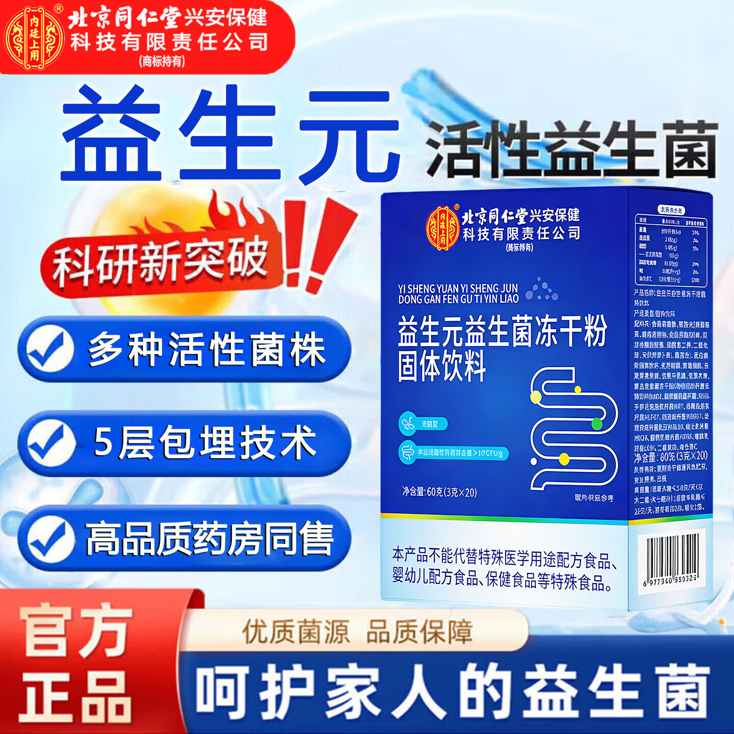 北京同仁堂益生菌粉肠道肠胃道益生元益生菌益生元活性菌冻干粉 3盒益生菌周期装 20袋*3盒