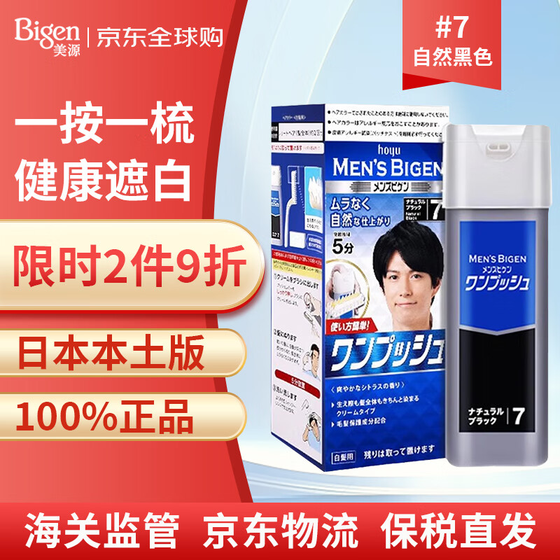 美源Bigen日本原装进口男士按压式染发剂植物染发膏遮白发黑色7号80g 自然黑色7号