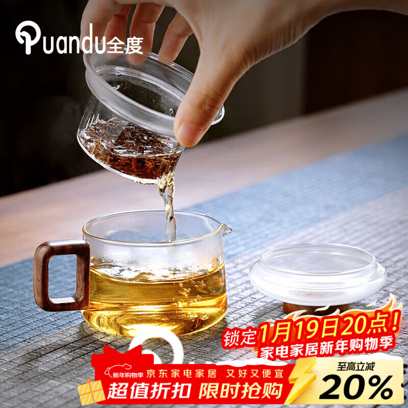 全度玻璃泡茶壶迷你泡茶玻璃小茶壶一人用小容量绿茶专用泡茶器 祥云小墩墩茶壶【透明】 200ml