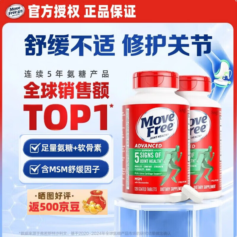 Move Free益节氨糖软骨素绿瓶 维骨力钙片成人中老年骨质疏松 美国进口营养 【有效期至28年4月底】舒缓绿瓶 120粒*2瓶