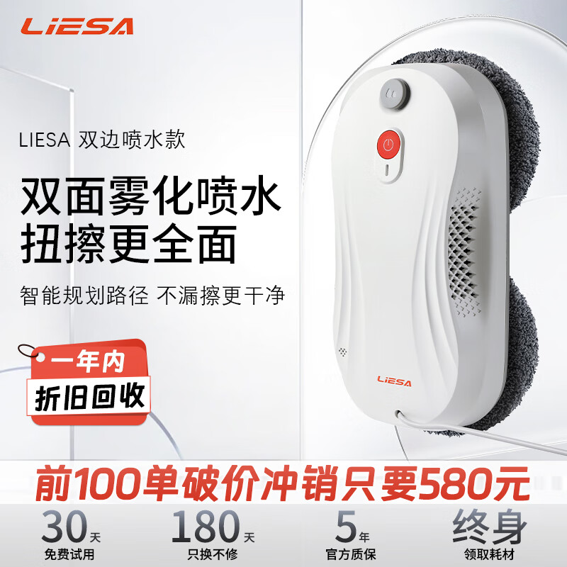 LiESA列萨智能喷水擦窗机器人全自动喷水擦玻璃擦窗户神器高层 【至尊版】白色圆形擦窗机器人 列萨双向喷水擦窗机器人