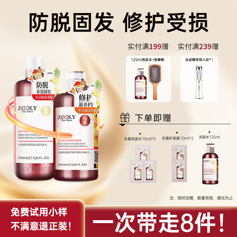 卓蓝雅(ZOOLY)生姜洗发水800ml+护400ml防脱固发控油洗发水修护滋养护发 洗发水800ml+护发素400ml