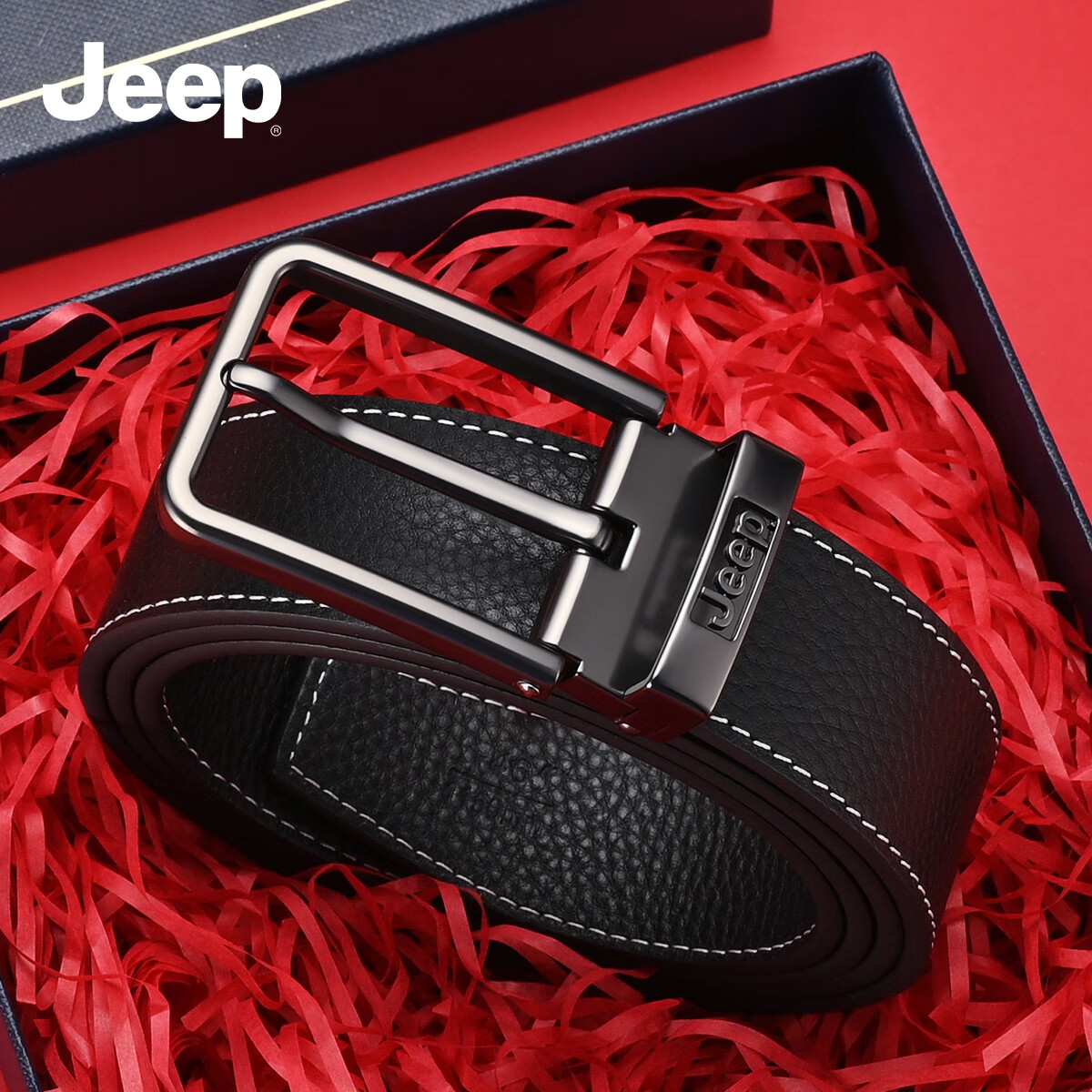 JEEP吉普男士皮带头层牛皮针扣腰带礼盒时尚商裤带 生日礼物送老公
