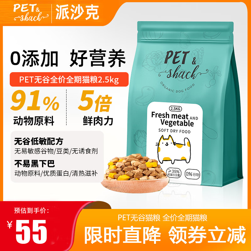 派沙克全价全期鲜肉无谷猫粮幼猫成猫营养专用鸡肉牛肉鱼肉配方不吃包退 【单包装】无谷猫粮/2.5kg