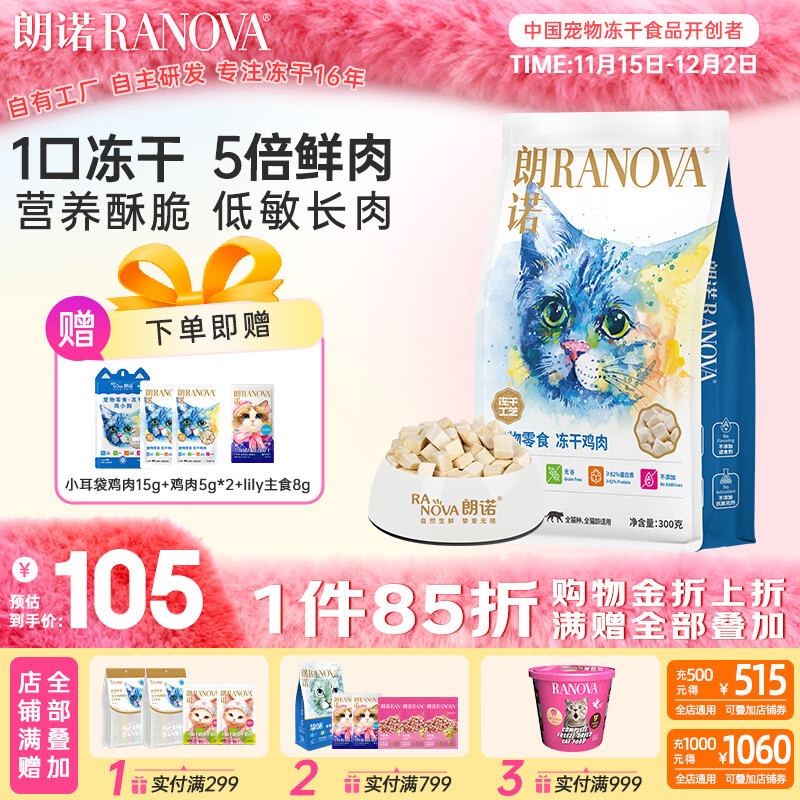朗诺冻干猫零食冻干粮成猫肉冻干零食宠物食品猫粮 【100%纯肉】冻干鸡肉300g