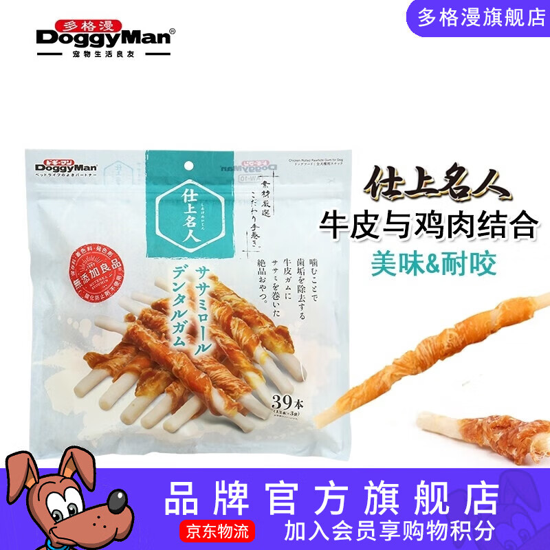 多格漫DoggyMan狗零食 名仕系列宠物鸡肉生牛皮卷39根/240g磨牙棒 长款