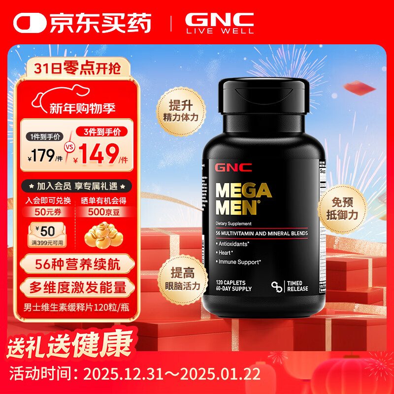 GNC健安喜男士多种复合维生素矿物质缓释片 富含56种营养均衡补充 男性56种营养素 120粒*1瓶