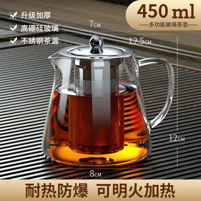 【厂家直供】玻璃泡茶壶茶具套装家用花茶水壶耐高温加厚耐热过滤 450ml 多功能泡茶壶【】加厚高硼硅玻璃