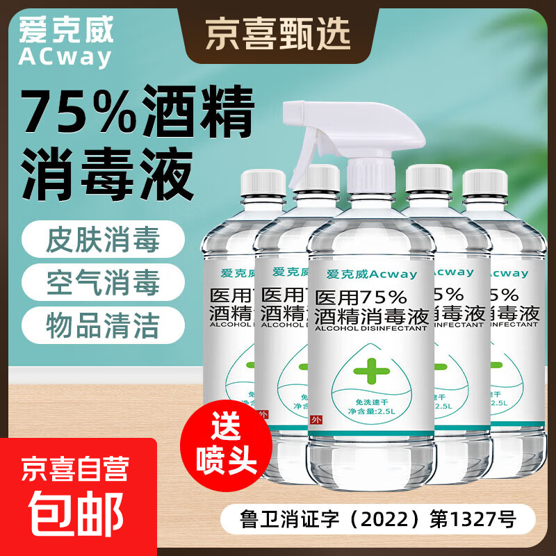 75度医用酒精消毒液家用杀菌500ml乙醇消毒液日常清洁75%消毒喷雾 500ml*5瓶+大喷头