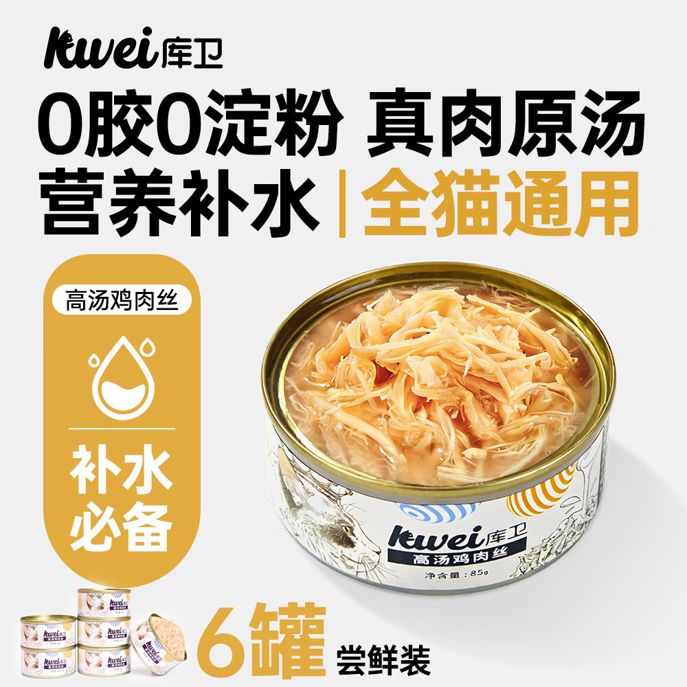 库卫猫咪零食猫罐头主食罐补充营养增肥发腮美毛补水幼猫成猫汤罐 高汤鸡肉丝|85g*6罐