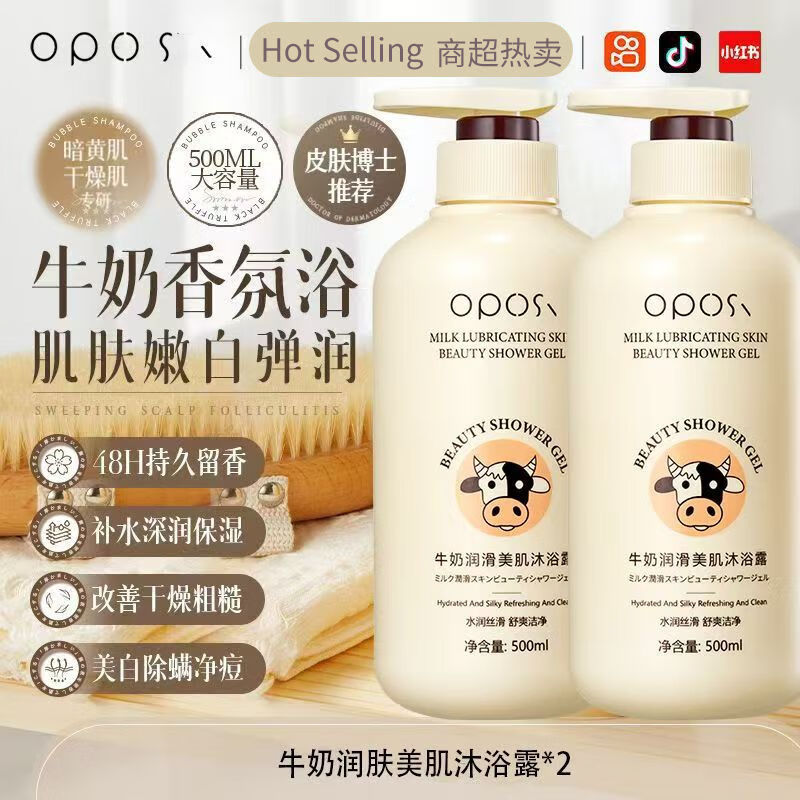 OPOSi【官方】牛奶沐浴露美白除螨祛背痘止痒去鸡皮持久留奶香味大容量 【第二件半价】牛奶美肌沐浴露*2