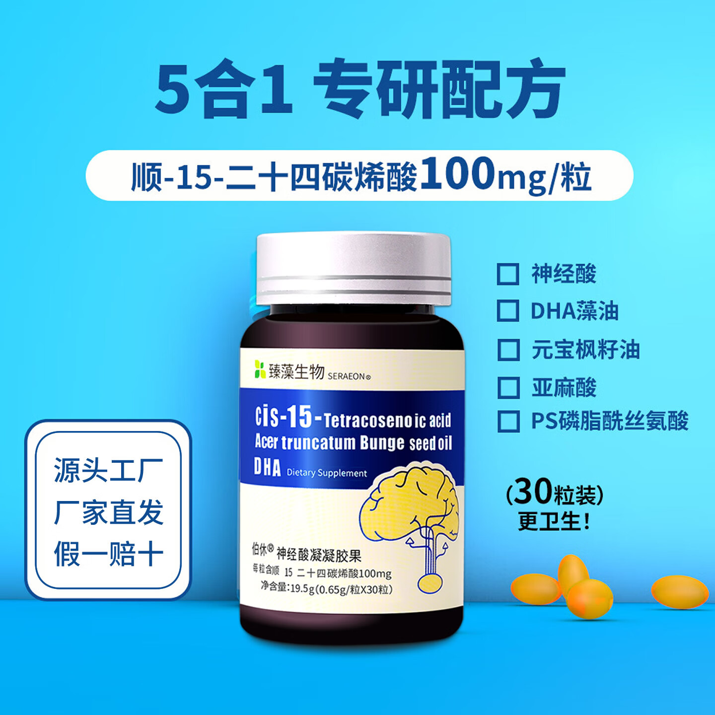 伯休100mg蓝款神经酸磷脂酰丝氨酸增强DHA藻油元宝枫子油软胶囊剂30粒 3瓶/30粒【周期装】