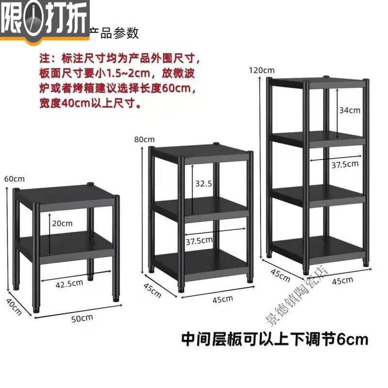 加厚厨房置物架家用落地多层夹缝储物架微波炉锅具多功能收纳架子 80厘米高三层-可调节 长90cm*宽30cm