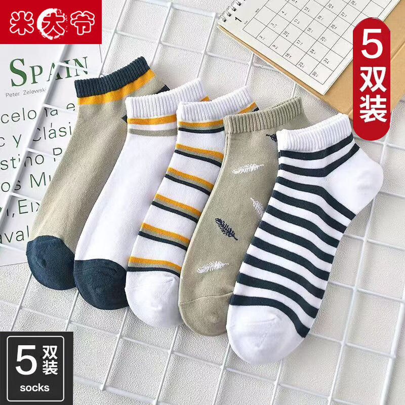米大爷袜子男士短袜夏季百搭男船袜吸汗透气休闲袜隐形浅口祙 潮流男短袜 5双 均码 (37-42码)