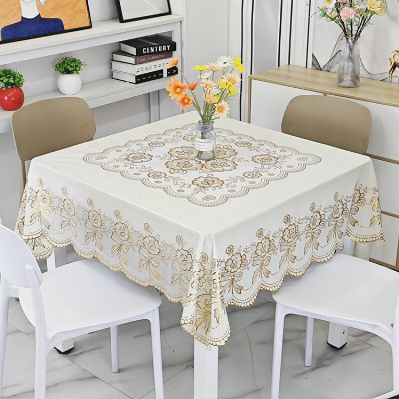 胥乐(XULE)防水防油桌布正加厚正方形正方桌布烫金印花八仙桌桌布PVC防水免 烫金印花(正方形130*130cm)