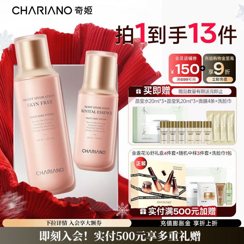 奇姬韩国保湿水乳套装玻尿酸补水保湿清爽不油腻送女友礼物正品 爽肤水140ml+精华50ml