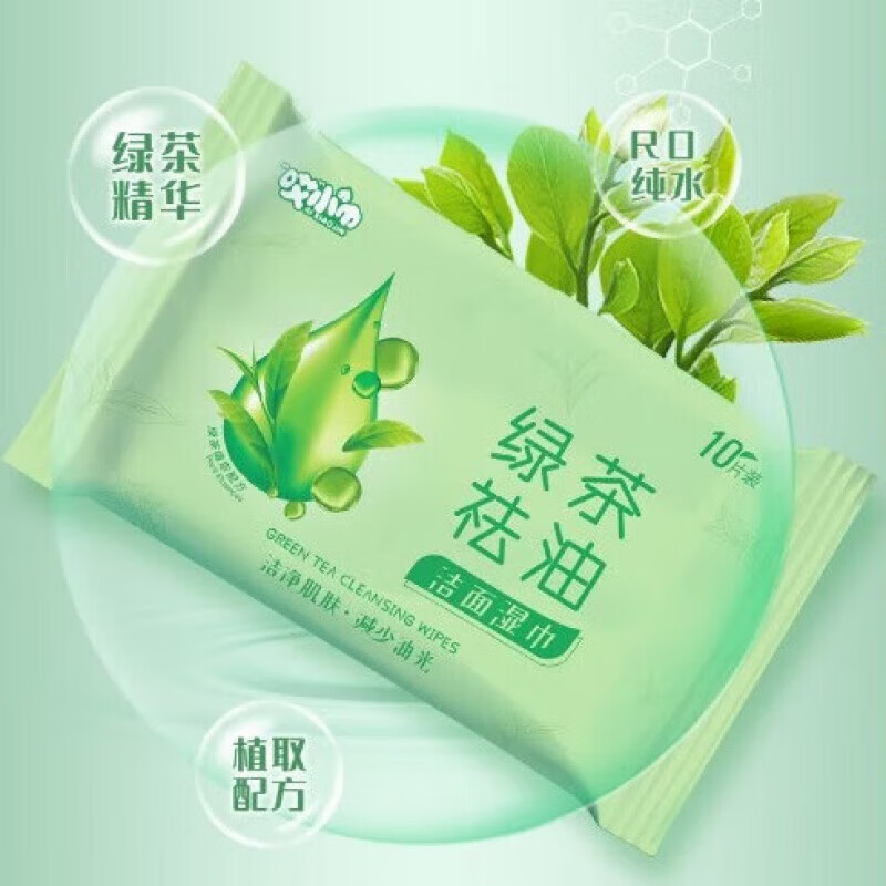 绿茶湿纸巾擦脸去油男女清凉洁面湿巾旅游学生军训免洗便携装随身 清凉湿巾-绿茶味-1片装
