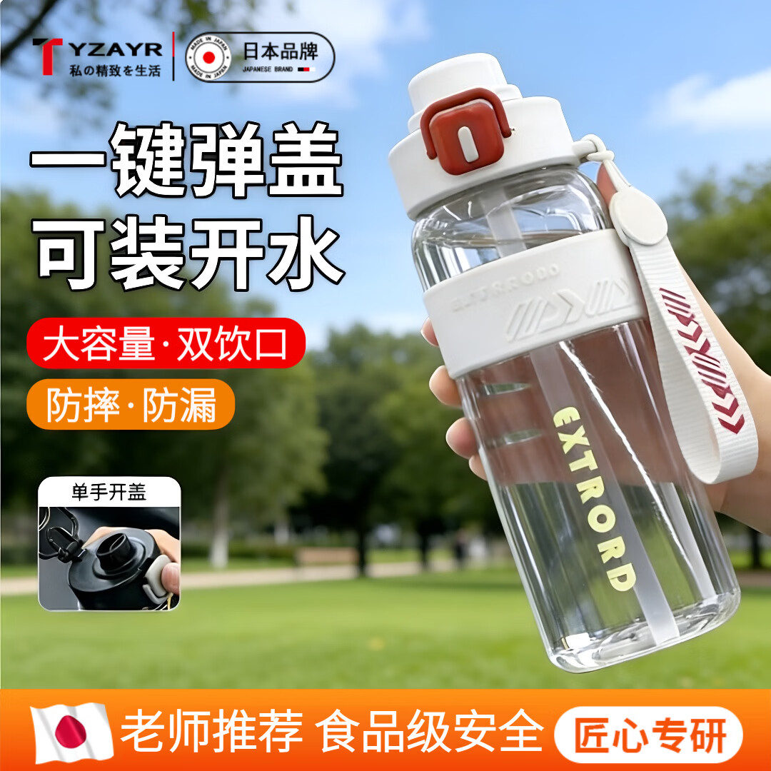 TYZAYR日本运动水杯学生上学专用2026新款儿童便携水壶茶杯大容量双引口 【旗舰款-月光白】双引/耐高温 800ml