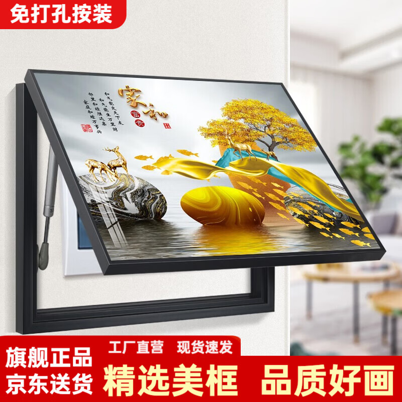 柳莺花燕免打孔电表箱装饰画现代简约客厅餐厅挂画电闸箱配电箱遮挡壁画 家和富贵 45X35遮挡35X25表箱 上掀款