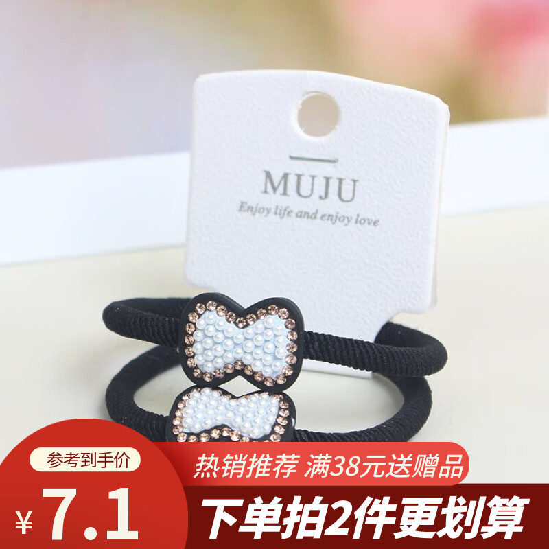 轻奢风珍珠蝴蝶结发绳感2条卡装皮筋加粗高弹力皮筋马尾头绳 1#黑色