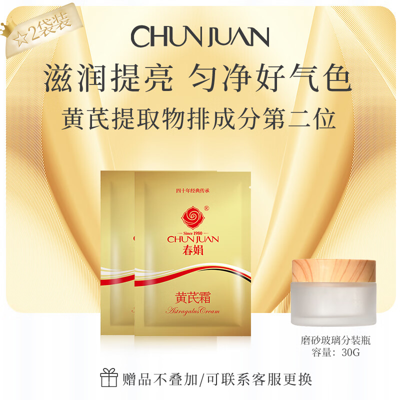 春娟黄芪霜提亮肤色改善暗沉保湿滋润男女士护肤补水面霜经典老国货 30g*2袋[基础适应版]