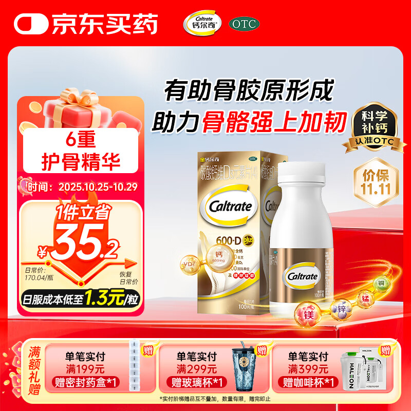 金钙尔奇 碳酸钙维D3元素片(4)100片 OTC成人中老年钙含镁锌铜维生素d3手足抽筋防治骨质疏松