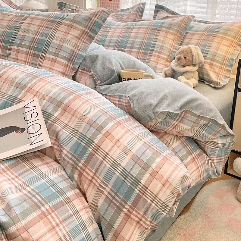 软贝小清新四件套 透气亲肤印花卡通简约田园风被套床单款套件 彩绘格 2.0m 床单款 四件套(被套200*230cm)