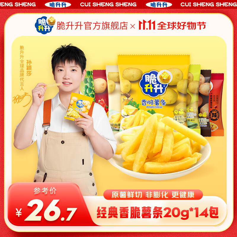 脆升升薯条20*14包混合经典小包280香脆薯休闲开袋宿舍小零食 原味7+蜂蜜7